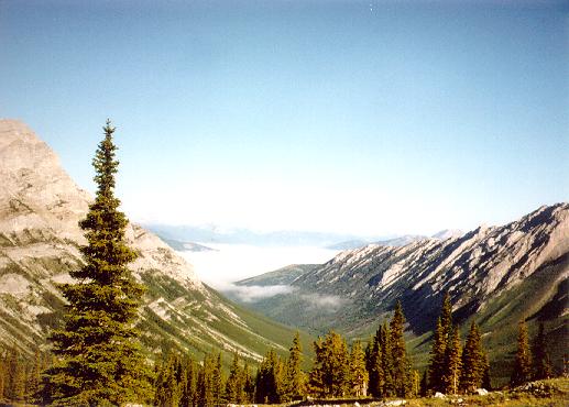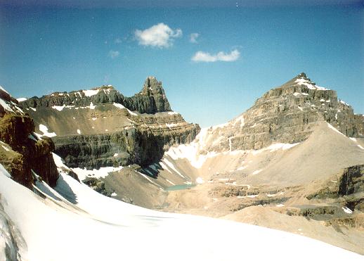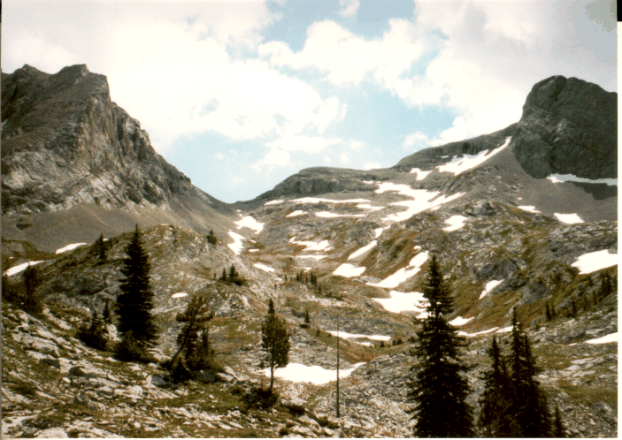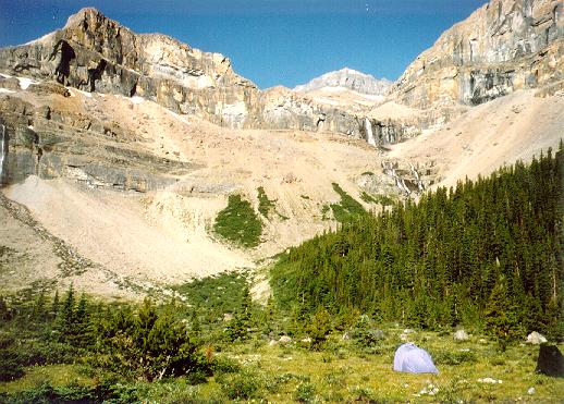 | View from the camp in Alberta. Yorkshire Pot is the other side of the col, in British Columbia.
